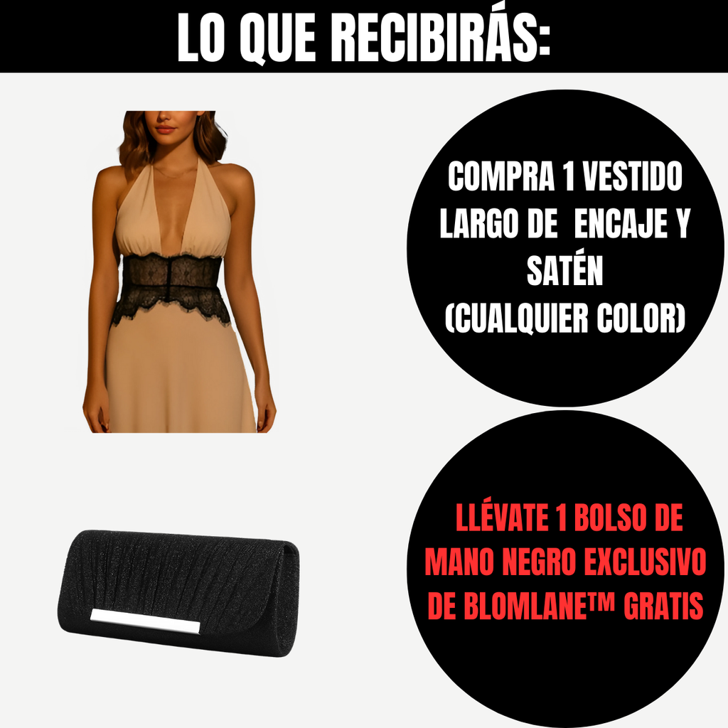 El Vestido Largo de Encaje y Satén es esa prenda que dice “hoy vine a causar impacto” sin que tengas que decir nada. Entre lo sensual y lo sofisticado, tiene esa energía de alfombra roja con cero esfuerzo. Ideal para eventos, cenas, bodas o simplemente cuando te quieres ver inolvidable. Te lo pones, y el mundo gira más lento (porque todas te miran).